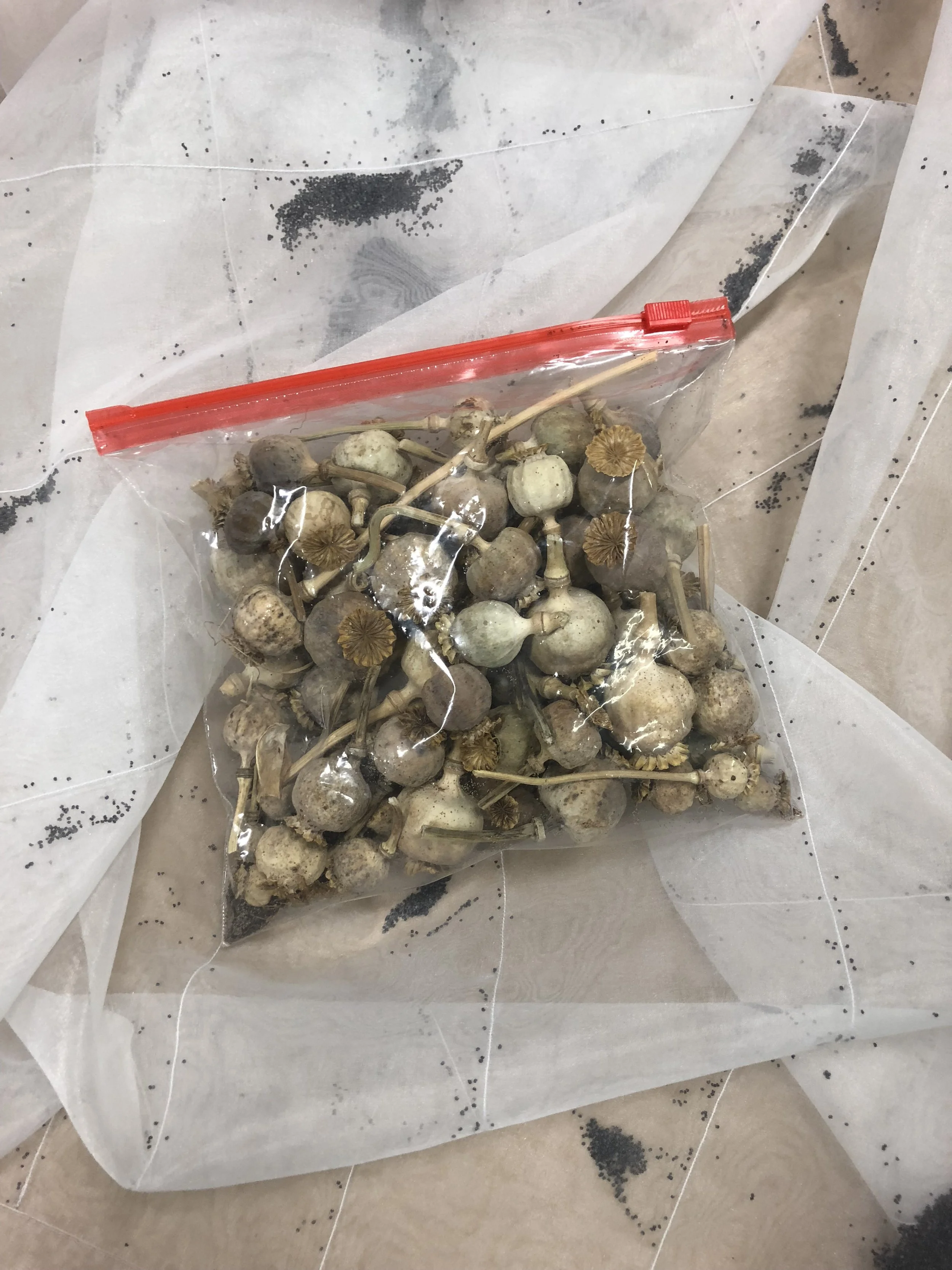 Papaver Somniferum seeds in organza, 250 x 425cm